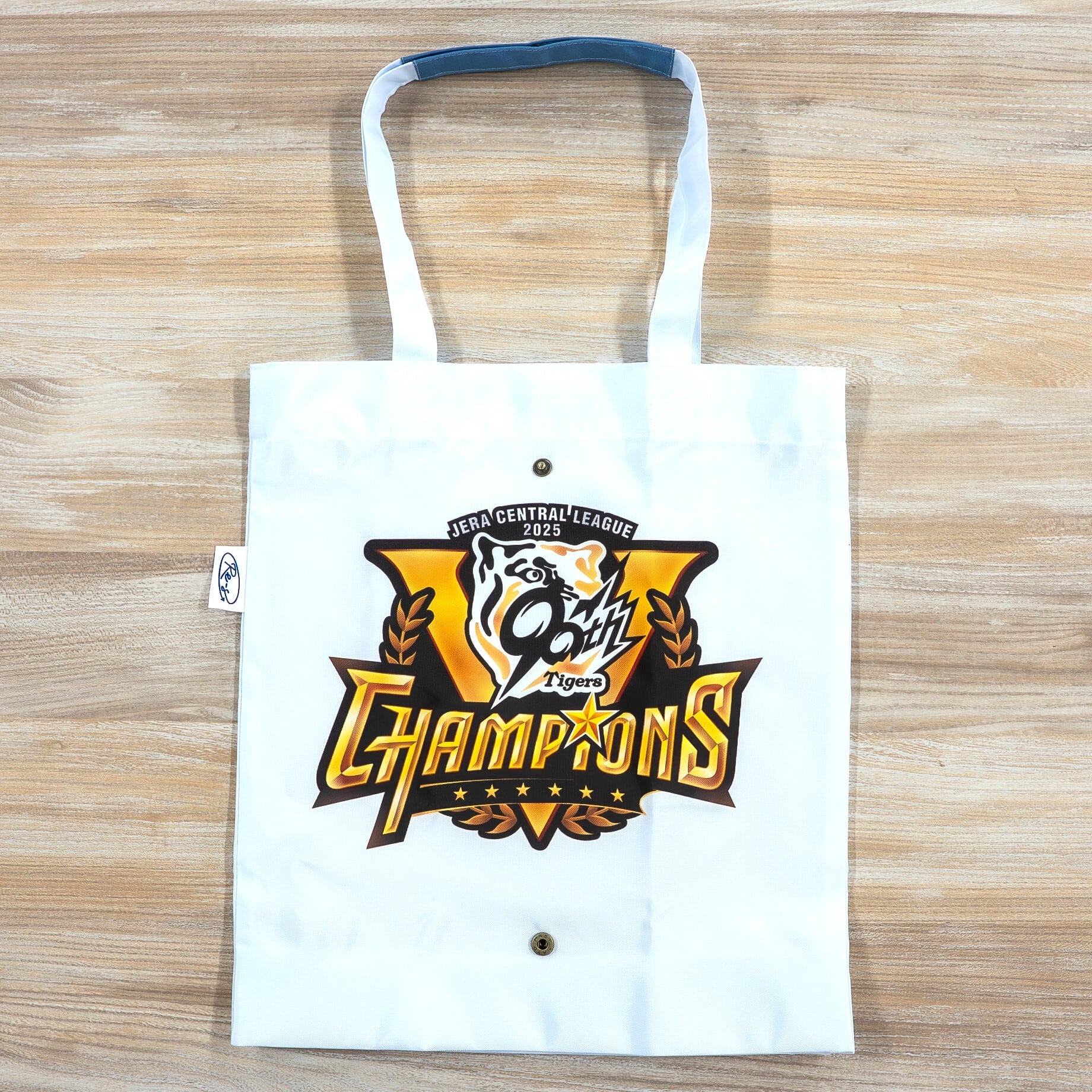 JERA セ・リーグ公式戦 2025にて優勝を果たした阪神タイガースの優勝ロゴがプリントされた縦型のエアバッグトート。数量限定商品です。