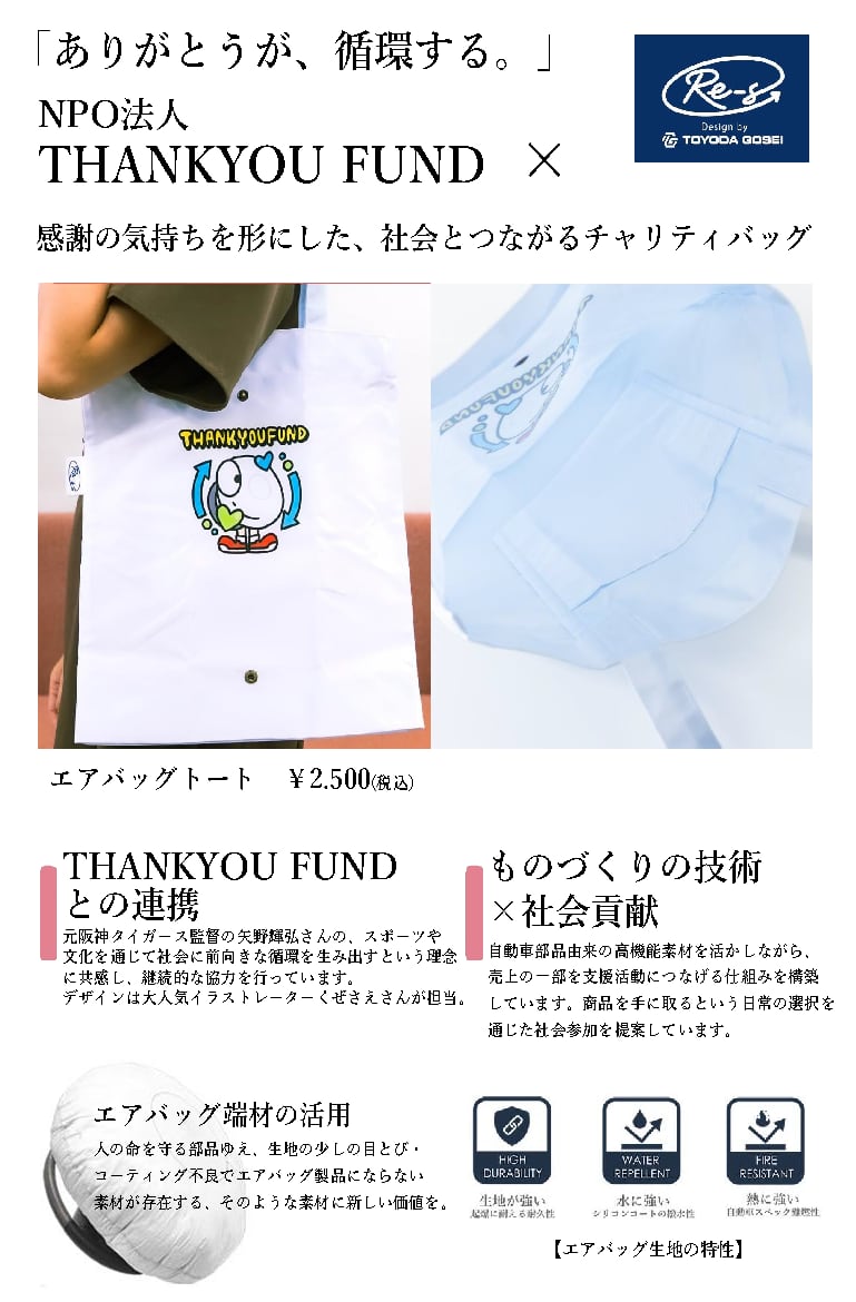< 豊田合成 × THANKYOU FUND > アップサイクル&チャリティエコバッグは、数量限定商品です