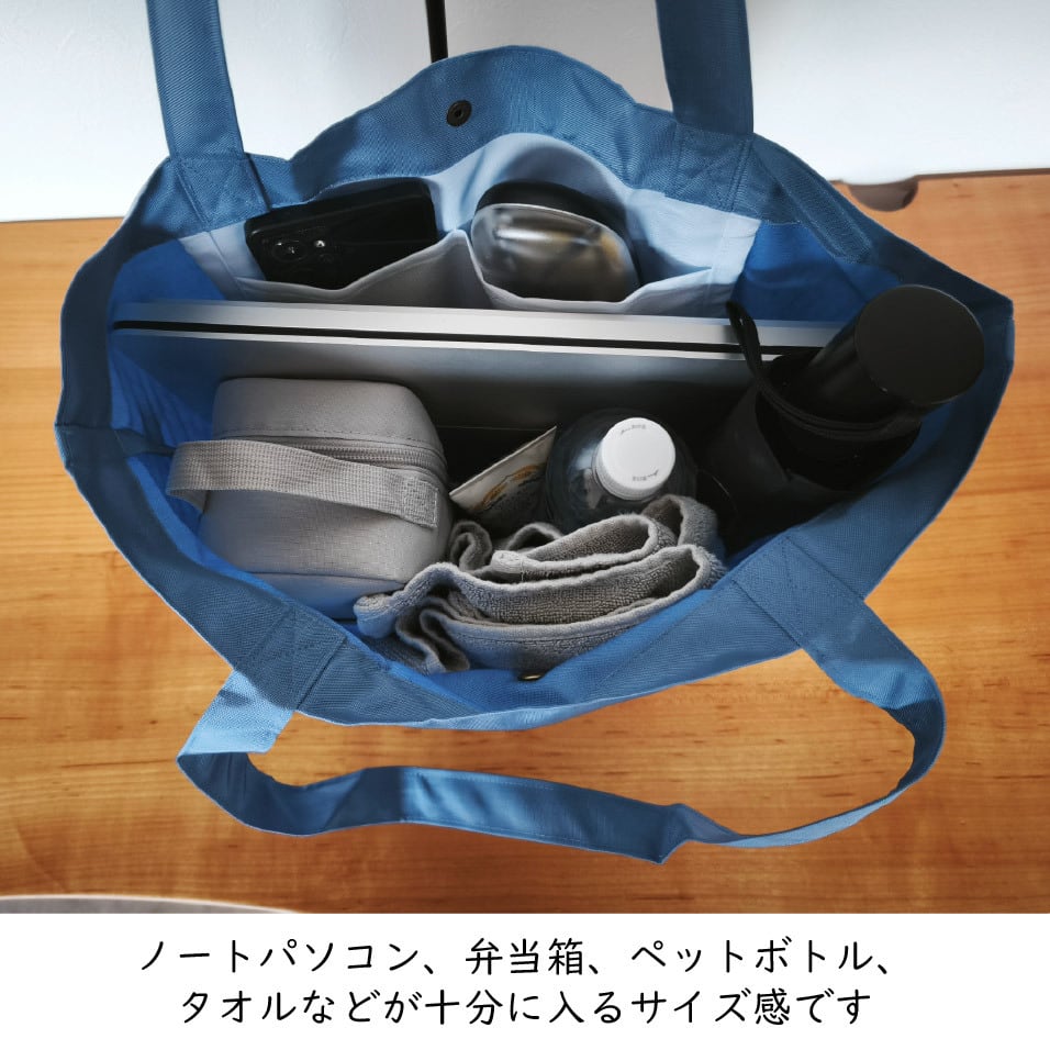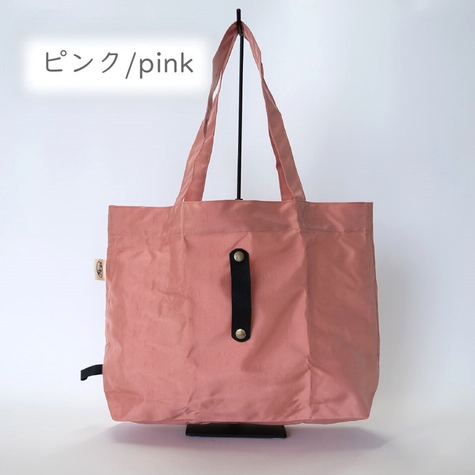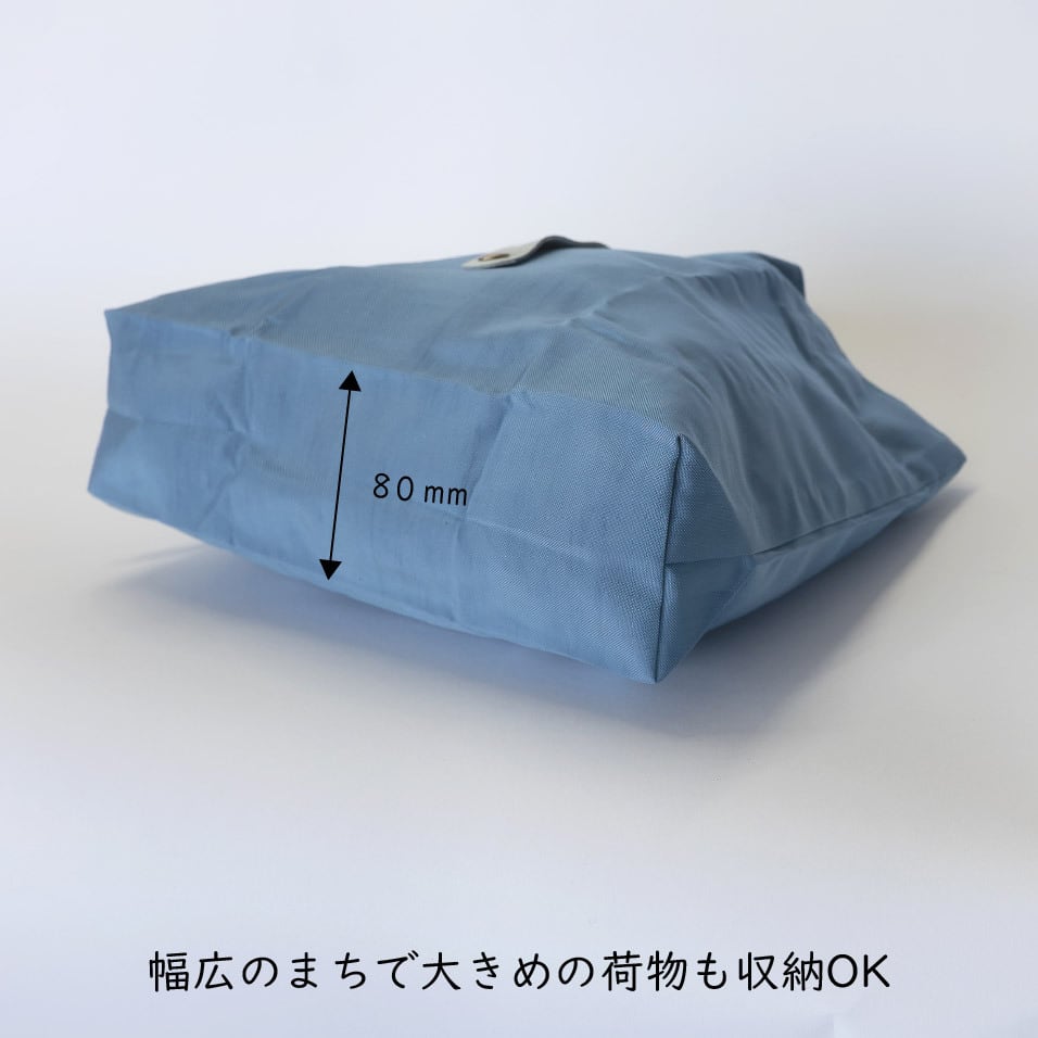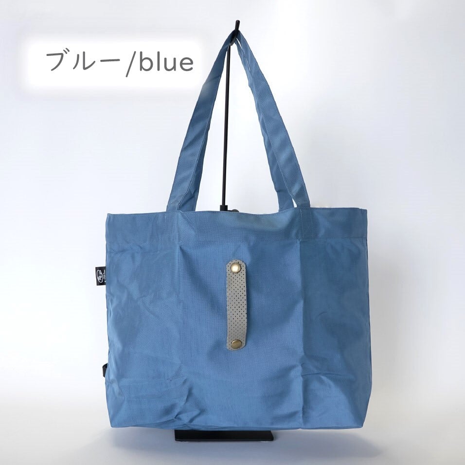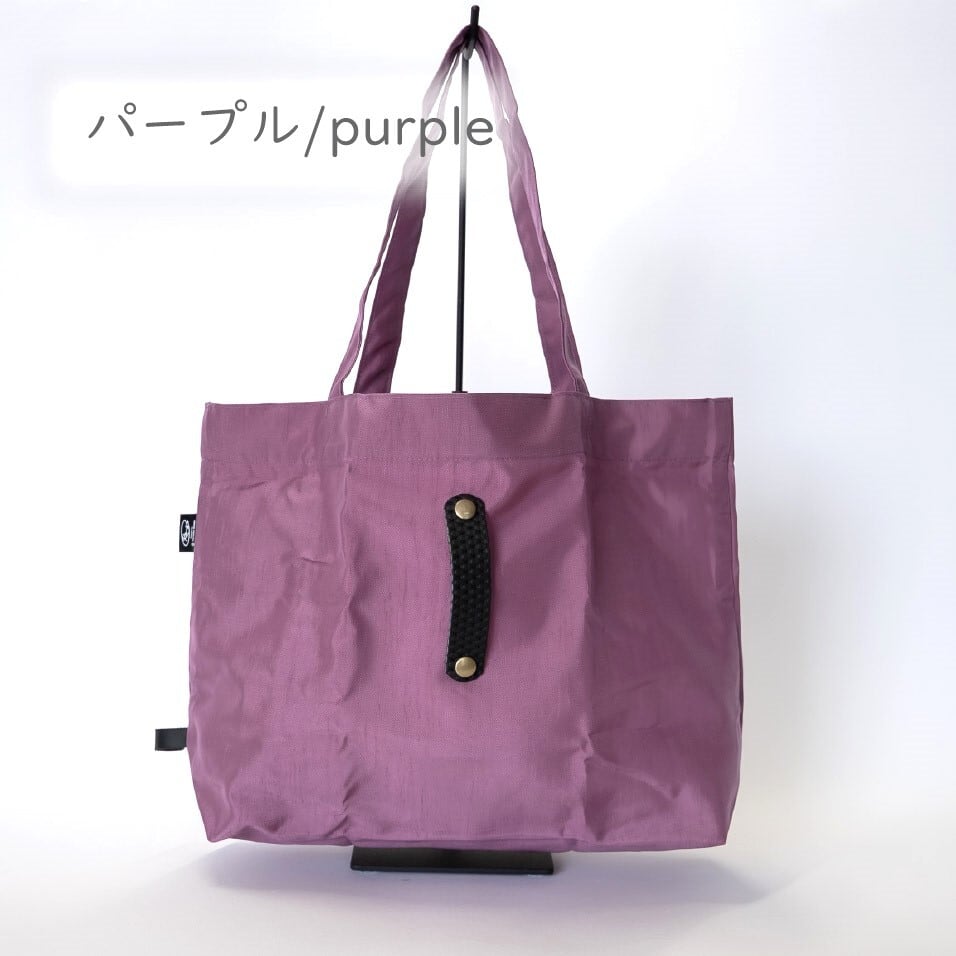 普段の買い物でのレジバッグはもちろん、水がしみにくい素材のためジムや温泉の着替え入れなど、使用シーンに応じてマルチに活躍できます。レザーバンドでバッグの閉口可能です。