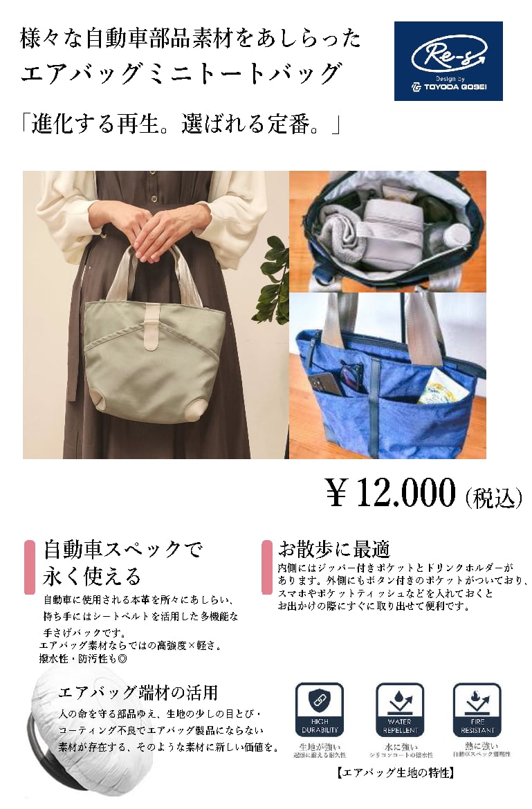 エアバッグの端材生地を活かした、環境への配慮と機能性を兼ね備えたアップサイクルトートバック。